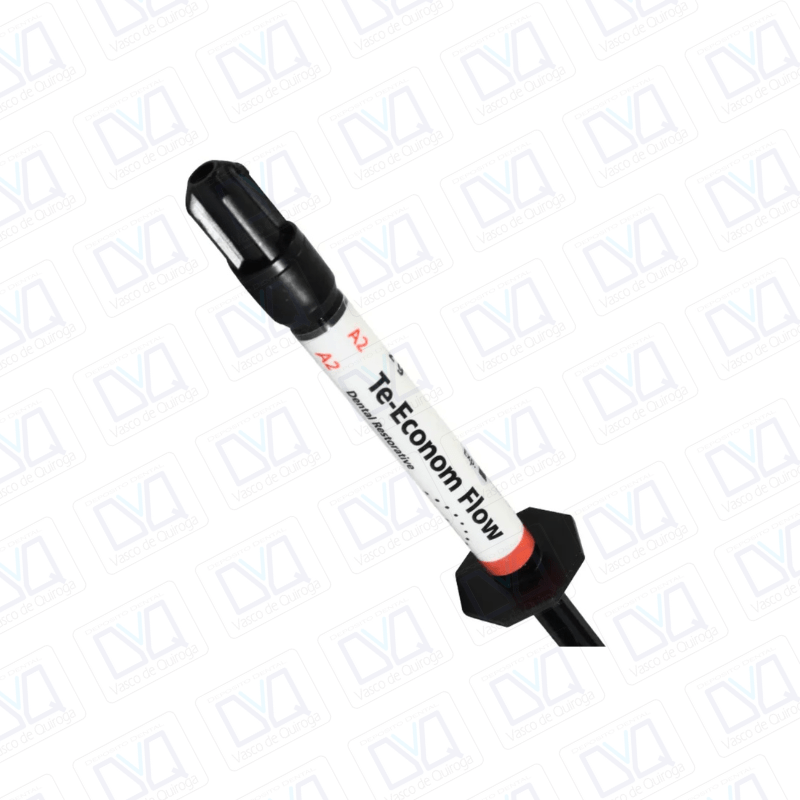 Te-Econom Flow es un composite híbrido fluido, fotopolimerizable y radiopaco. Polimeriza con luz en la franja de longitud de onda de 400-500 nm (luz azul). Disponible en los colores A2 y A3.